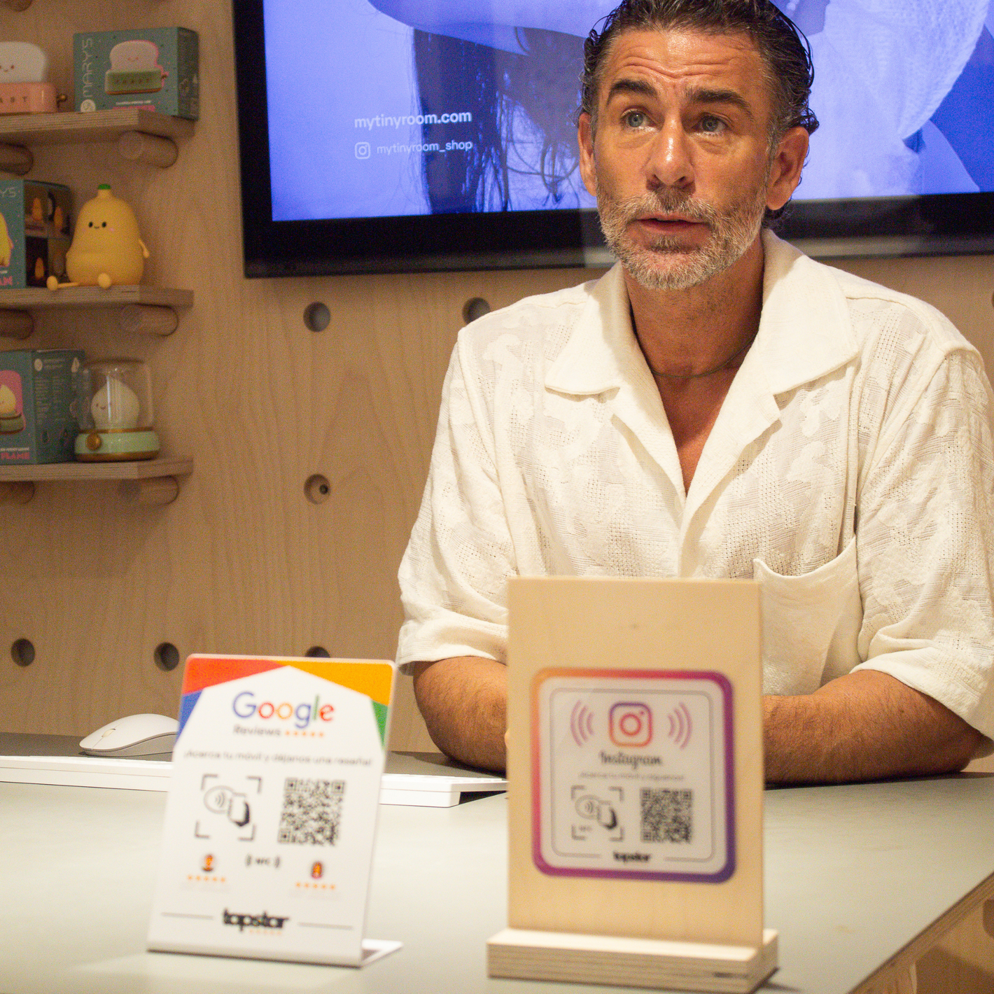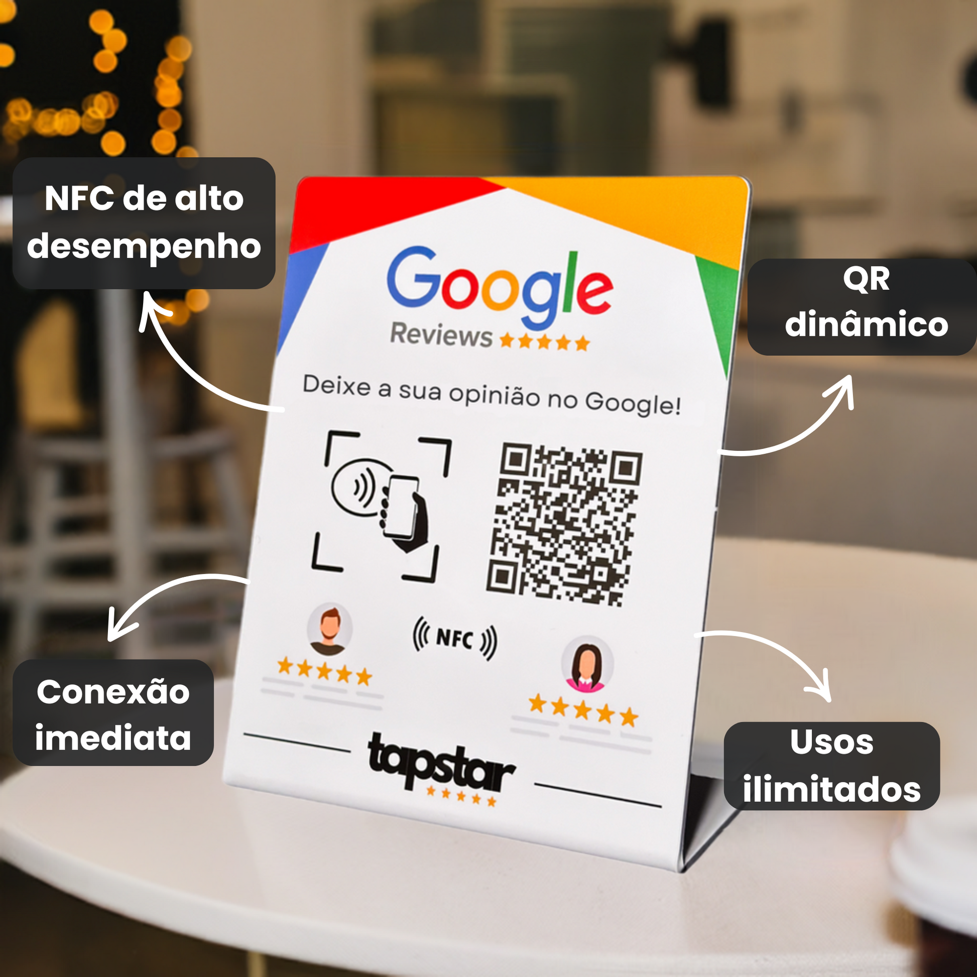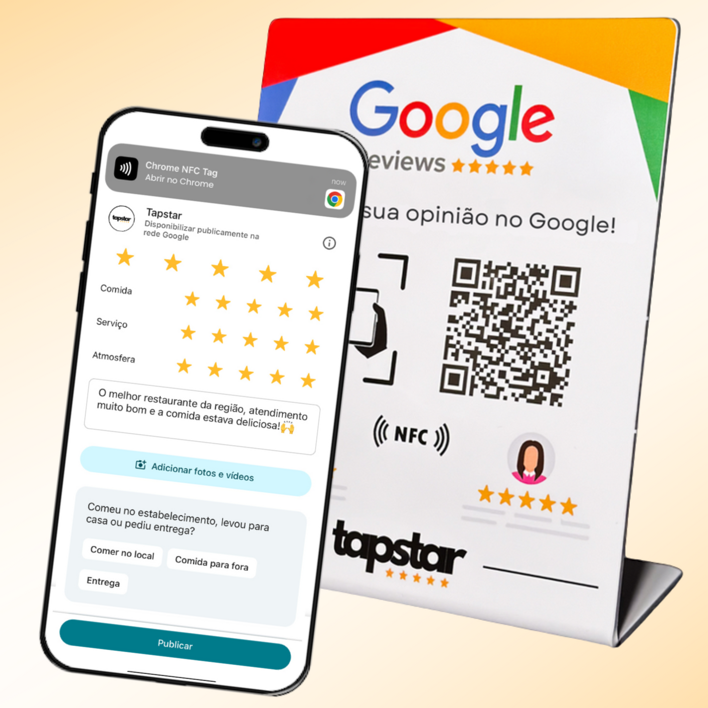 Significa tecnologia sem contacto. Os dispositivos Tapstar têm incorporado um chip NFC que deteta o telemóvel do cliente e direciona-o diretamente para deixar uma avaliação no Google.